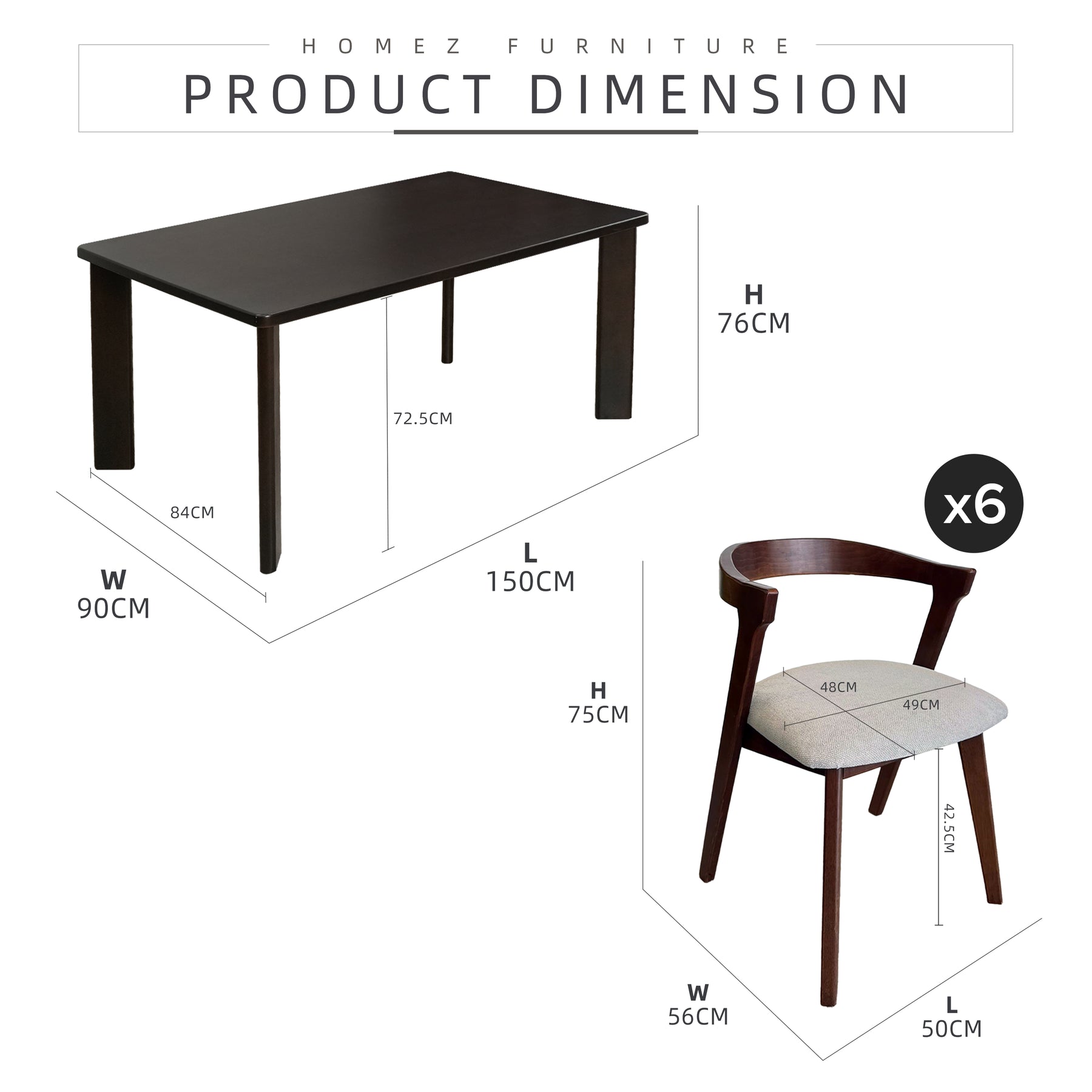 • Dining Table (Neo): L150CM x W90CM x H76CM