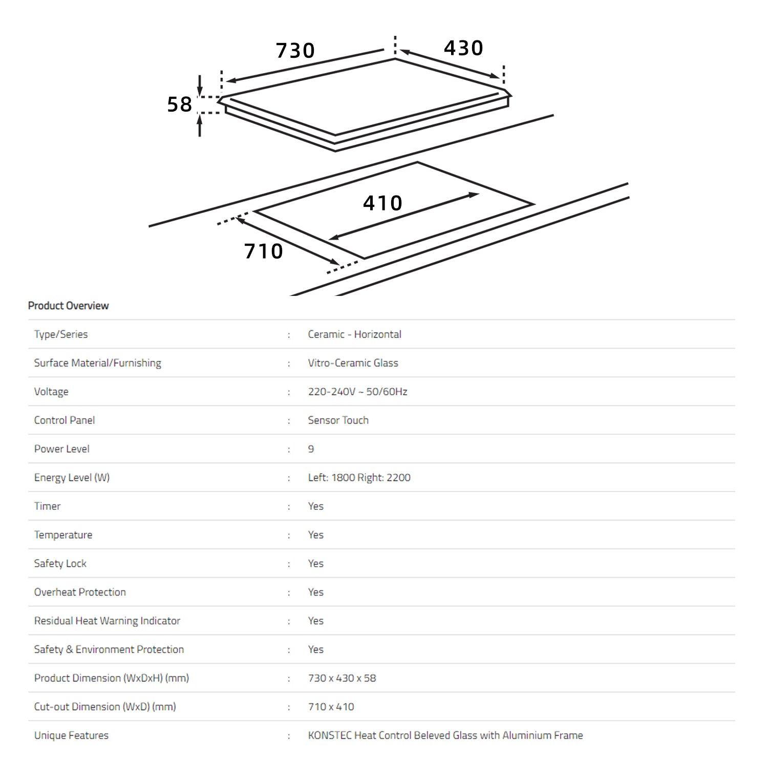 - Surface Material/Furnishing: Stainless Steel & Tempered Glass