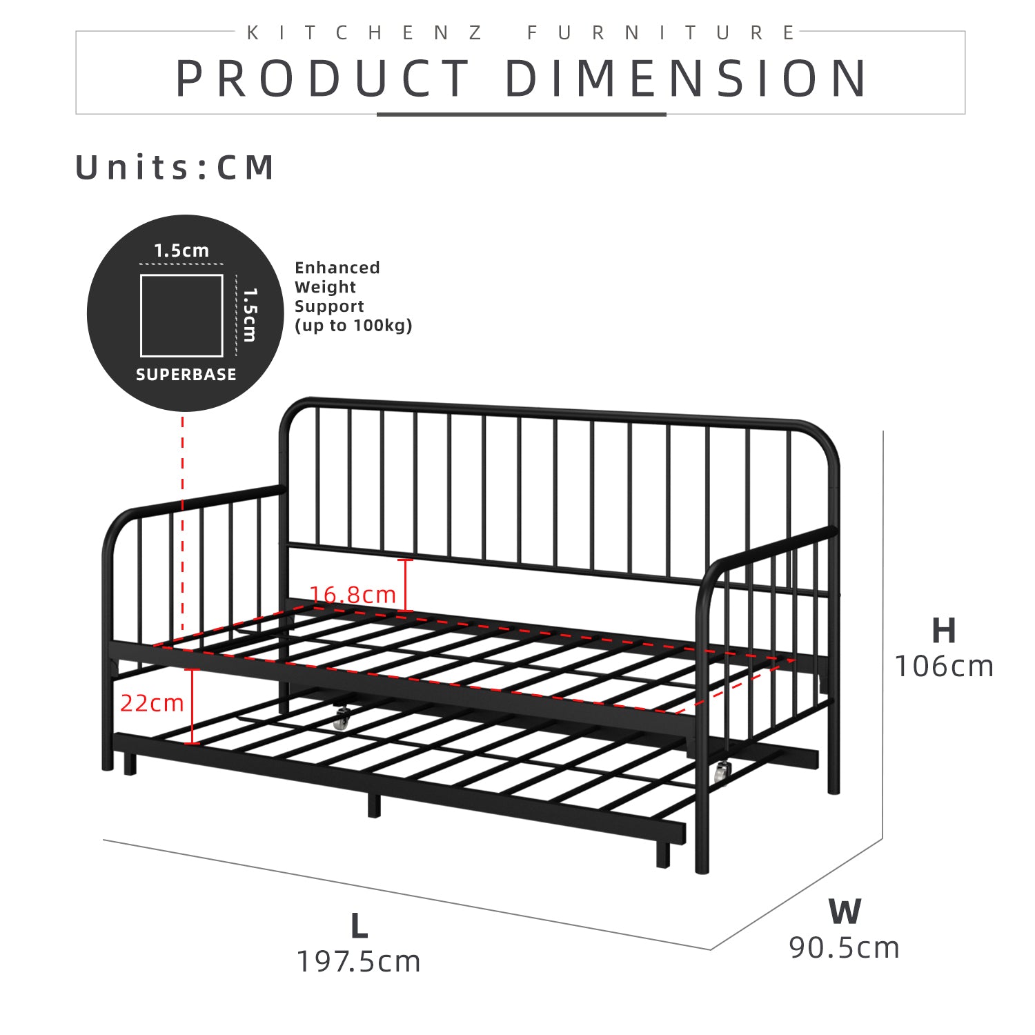 - Pull-out Bed Frame Dimension : L197.5 x W90.5 x H106 cm