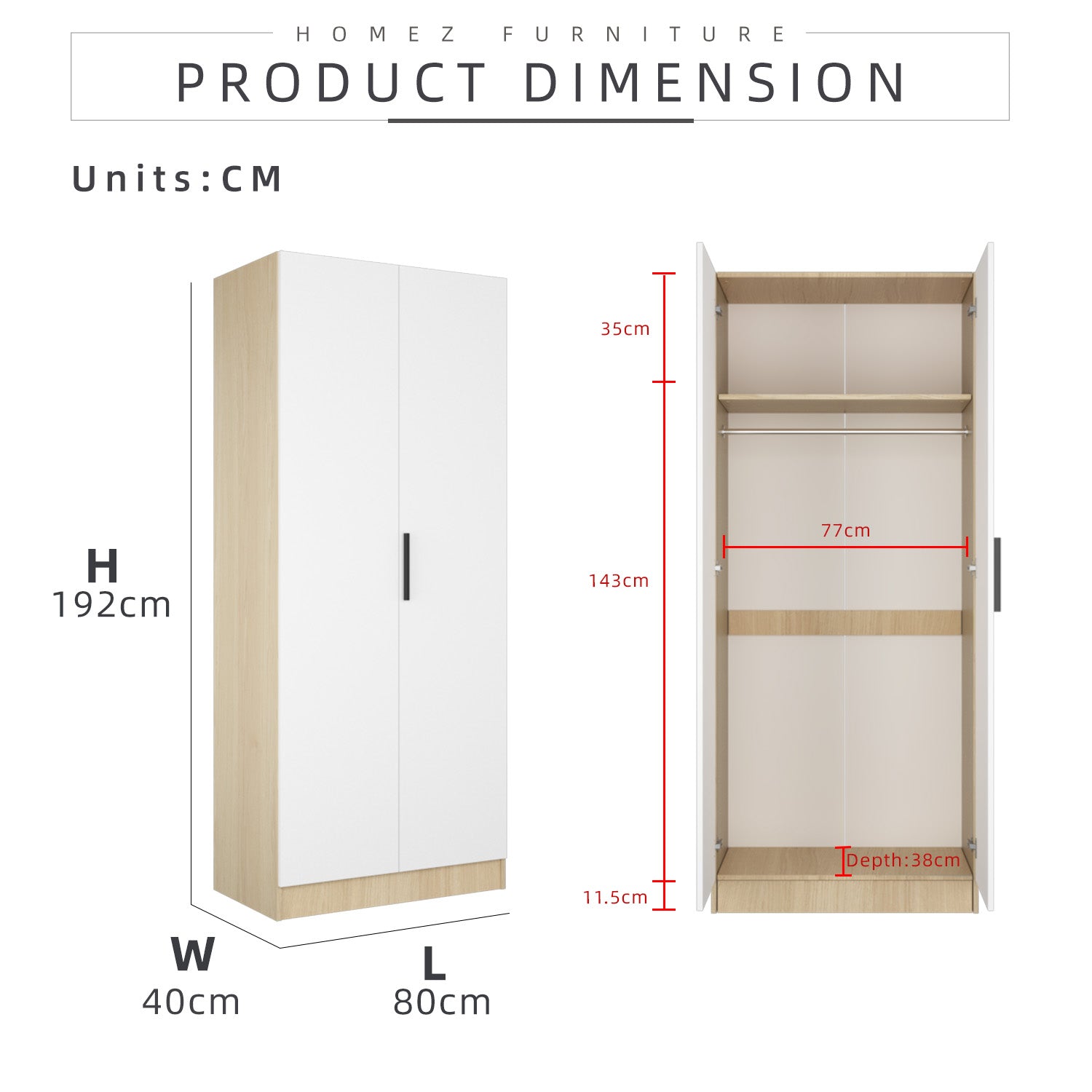**H192cm 2 Door Wardrobe ( WD-6419 )**