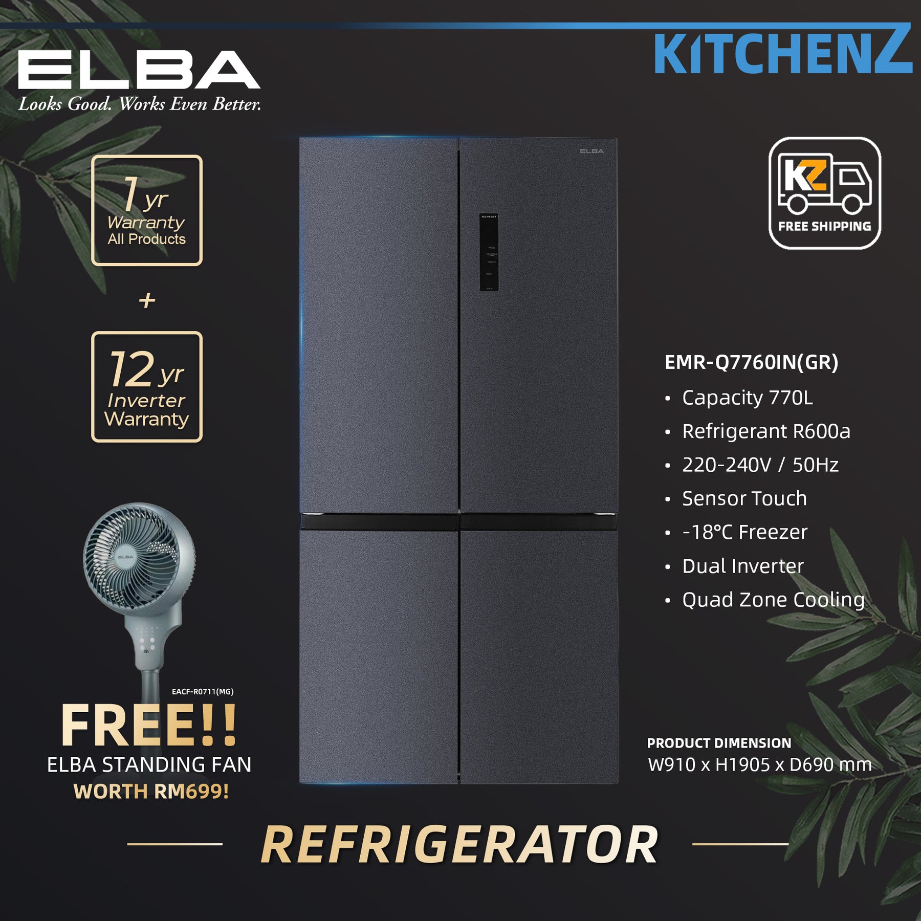 Featuring rapid cooling, hybrid+ cooling system, quad zone cooling system, and anti bacteria & deodorization, preserving your freshness and nutrition of your food.